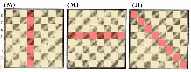 Вы уже знаете, что на доске восемь рядов. Они так и называются — первый ряд, второй, третий, четвертый, пятый, шестой, седьмой и восьмой ряд.