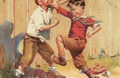 Раньше было какое-то здоровое отношение к небольшим дракам-потасовкам. Конечно, я не имею в виду жестоких избиений, но возня братьев и одноклассников считалась неотъемлемой частью детства и юношества. Мальчику, молодому человеку бывает необходима разрядка в виде «обмена любезностями» или занятий боксом и борьбой.