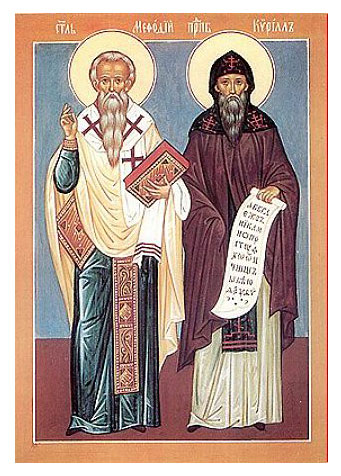 Святые равноапостольные первоучители и просветители славянские, братья Кирилл и Мефодий происходили из знатной и благочестивой семьи, жившей в греческом городе Солуни. Святой Мефодий был старшим из семи братьев, святой Константин (Кирилл - его монашеское имя) - самым младшим. Святой Мефодий был сначала в военном звании и был правителем в одном из подчиненных Византийской империи славянских княжеств, по-видимому, болгарском, что дало ему возможность научиться славянскому языку. Пробыв там около 10 лет, святой Мефодий принял затем монашество в одном из монастырей на горе Олимп. Святой Константин с малых лет отличался большими способностями и учился вместе с малолетним императором Михаилом у лучших учителей Константинополя, в том числе у Фотия, будущего патриарха Константинопольского. Святой Константин в совершенстве постиг все науки своего времени и многие языки, особенно прилежно изучал он творения святителя Григория БогословаЖитие.. Святитель Григорий Богослов, архиепископ Константинопольский.Икона. Святитель Григорий Богослов, архиепископ КонстантинопольскийМолитвыХрамы. За свой ум и выдающиеся познания святой Константин получил прозвание Философа (мудрого). По окончании учения святой Константин принял сан иерея и был назначен хранителем патриаршей библиотеки при храме святой Софии, но вскоре покинул столицу и тайно ушел в монастырь. Разысканный там и возвращенный в Константинополь, он был определен учителем философии в высшей Константинопольской школе. Мудрость и сила веры еще совсем молодого Константина были столь велики, что ему удалось победить в прениях вождя еретиков-иконоборцев Анния. После этой победы Константин был послан императором на диспут для прений о Святой Троице с сарацинами (мусульманами) и также одержал победу. Вернувшись, святой Константин удалился к брату своему святому Мефодию на Олимп, проводя время в непрестанной молитве и чтении творений святых отцов.