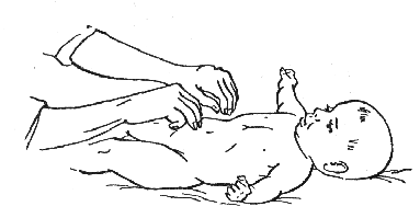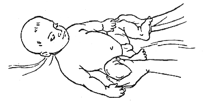В заключение процедуры можно применить прием поколачивания ягодиц. Для этого следует осторожно ударять по ягодицам ребенка подушечкой указательного пальца. Затем сделать еще несколько поглаживающих движений.