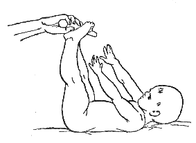 Описанное выше упражнение усложняется тем, что ребенок должен самостоятельно сгибать и разгибать ноги по команде взрослого. Упражнение выполняется 6 раз сначала медленно, а затем в более быстром темпе.