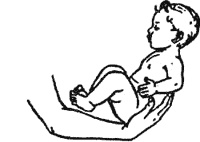 Исходное положение: на спине, ногами к краю стола. Взрослый, взяв ребенка под спину и ягодицы, приподнимает его на ладонях над столом и удерживает на весу. При этом происходит рефлекторное сгибание туловища, ноги наклон головы вперед. 1-2 раза.