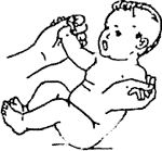 Рис. 29. Приподнимание ребенка на ноги – упражнение пассивное.