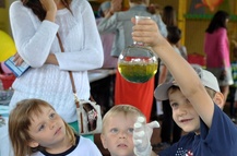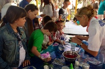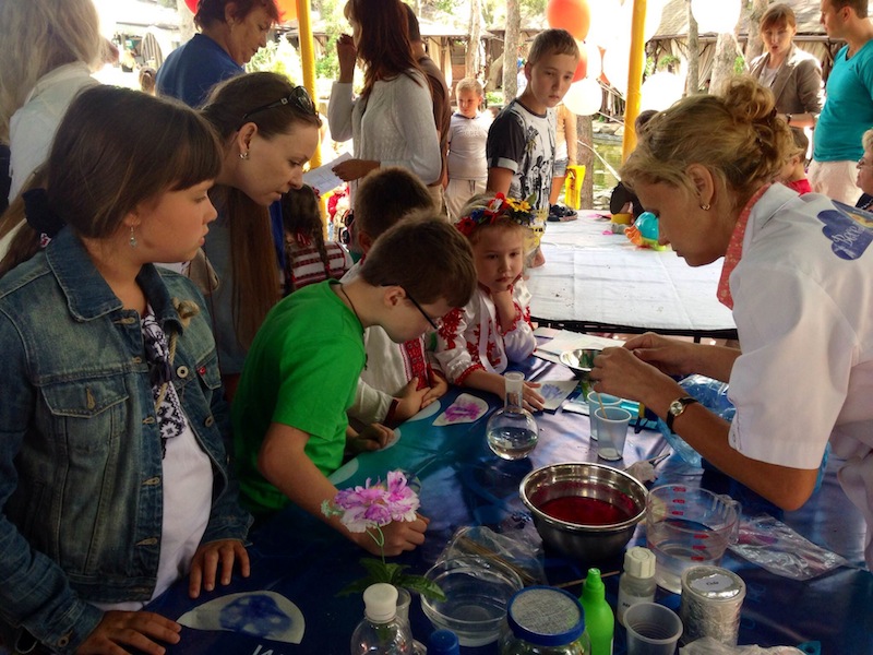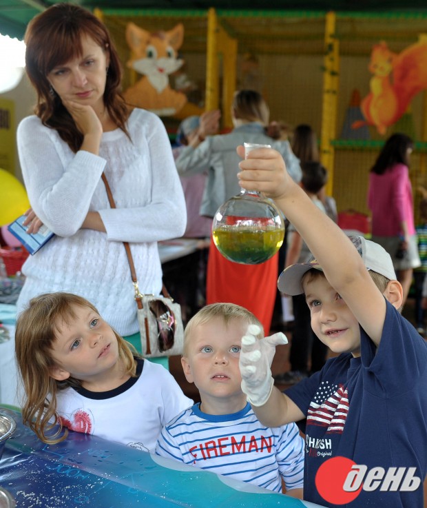 В рамках ярмарки прошло представление химиков - вместе с детьми делали разные опаты, изучали вещества.