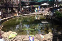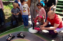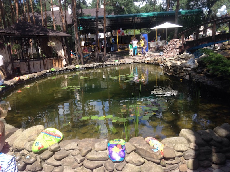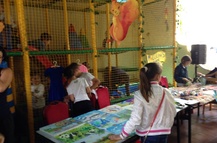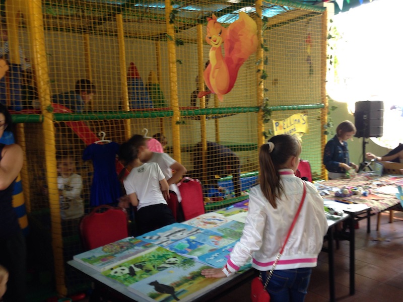 Для деток была выделена специальная зона со столиками. Дети поменьше могли поиграть на плошадке с горками и шариками.