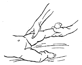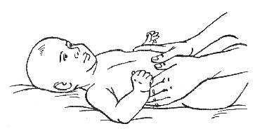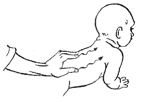 Поколачивание при массировании ребенка первого года жизни может производиться тыльной стороной слегка расставленных пальцев.