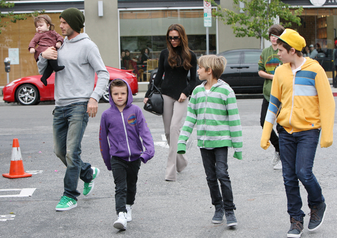 Вся семья активно занимается спортом. Виктория ходит на фитнес и считает, что мама должна обязательно давать пример. Дети играют в баскетбол, футбол, теннис, занимаются плаванием. Малышка Харпер скоро запишется в их спортивную кампанию!
