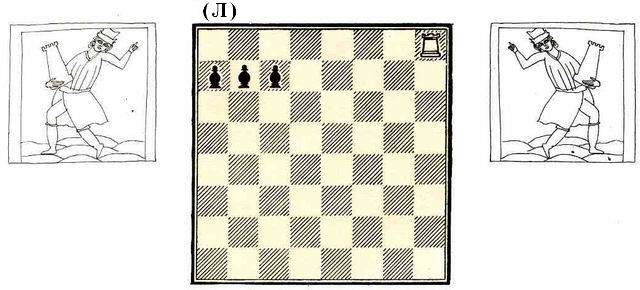 Дядя Леня размашисто передвигал ладью с места на место, показывая, как она хозяйничает на доске. Потом он поставил черные пешки на поля а7, b7 и с7, а белую ладью поместил в углу на поле h8.