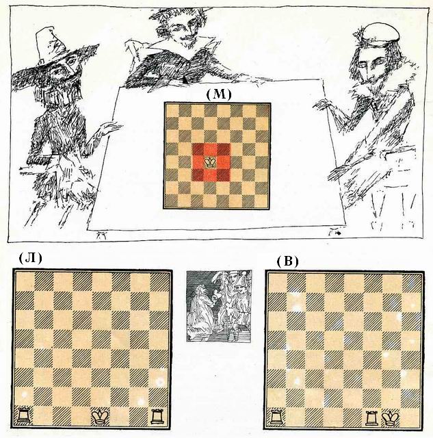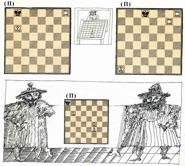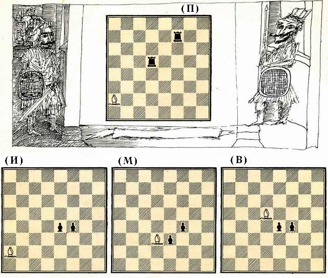 Вася и Сережа притихли, пораженные особым положением этой трусоватой, неповоротливой фигуры. А скучавший на диване шахматный король поднялся и голосом Вадика торжественно произнес.