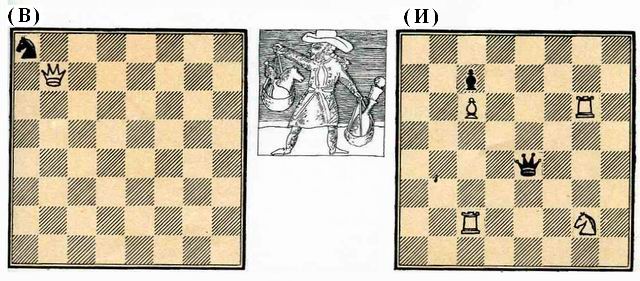 (И) Но если свои или чужие фигуры мешают ладьям соединиться, протянуть друг другу руку помощи, тогда под ударами ферзя одна из ладей может погибнуть.