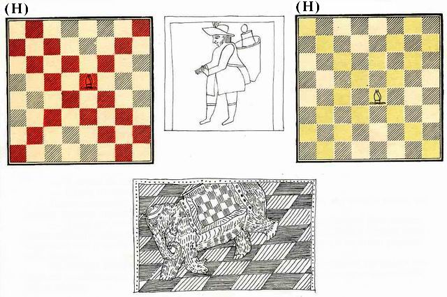 Дядя Леня снял с доски все фигуры и поставил белого ферзя на поле е4. От этого поля каждый из ребят мысленно чертил дорожки вверх, вниз, направо, налево и наискосок по белым диагоналям (Н).