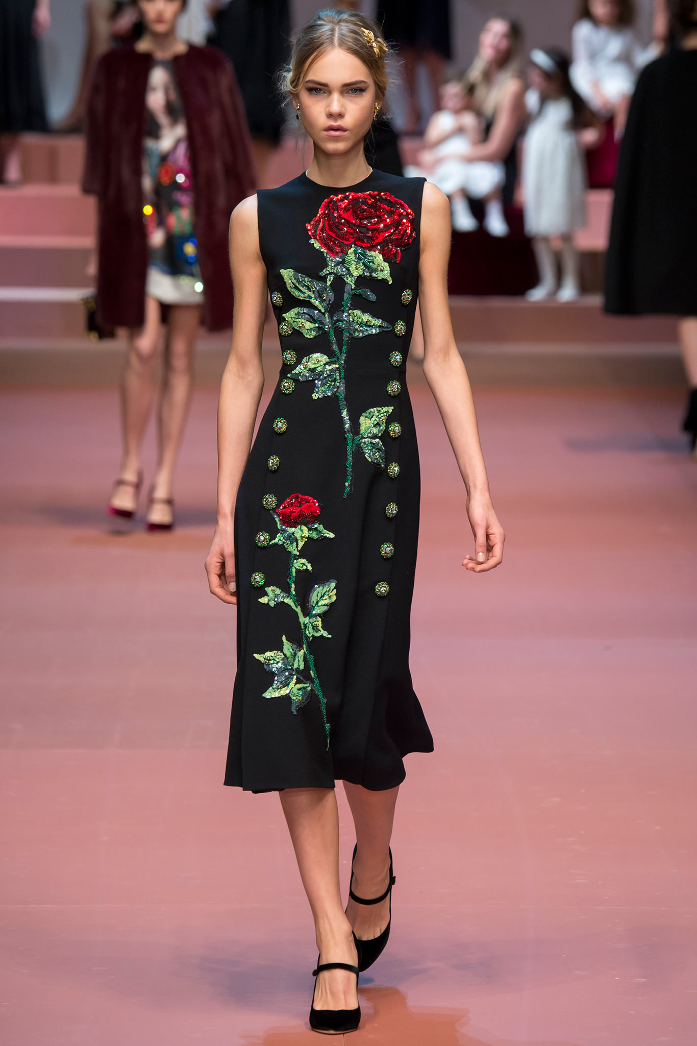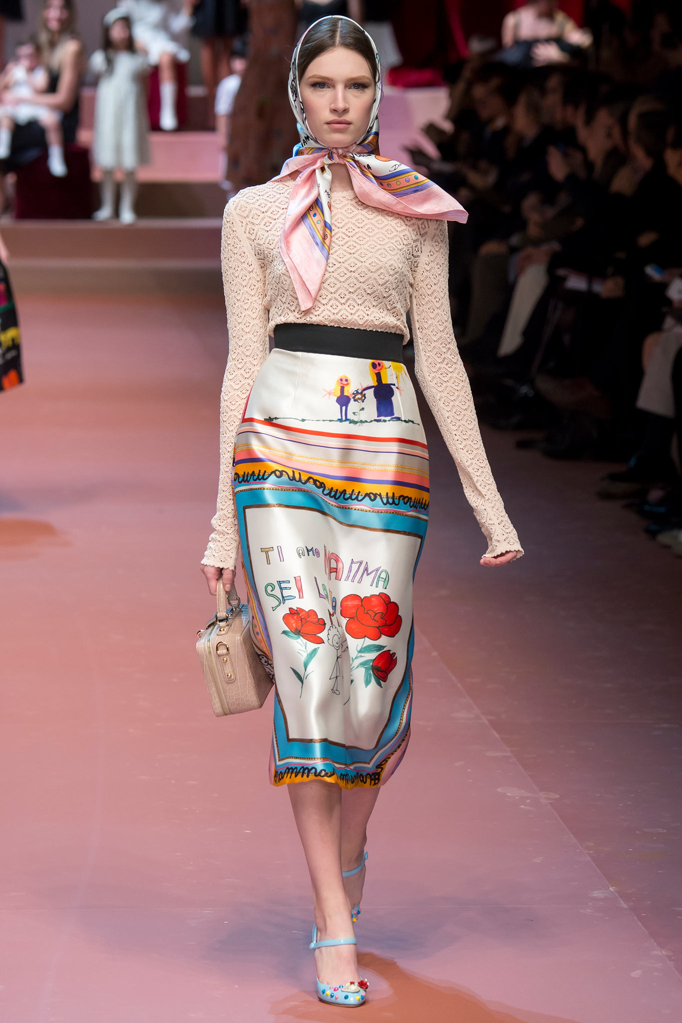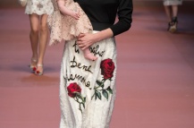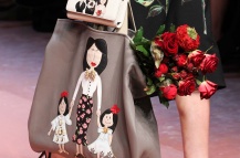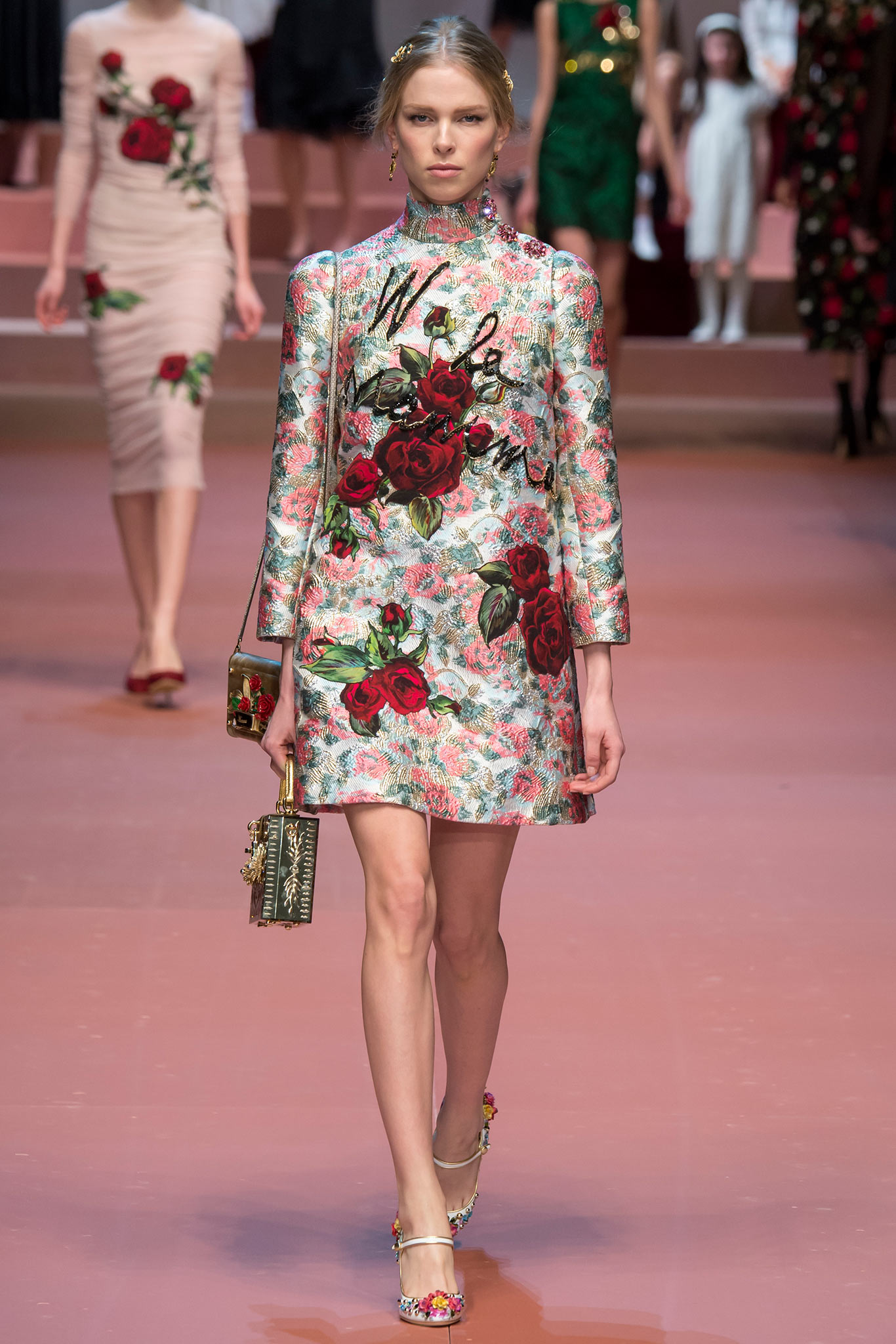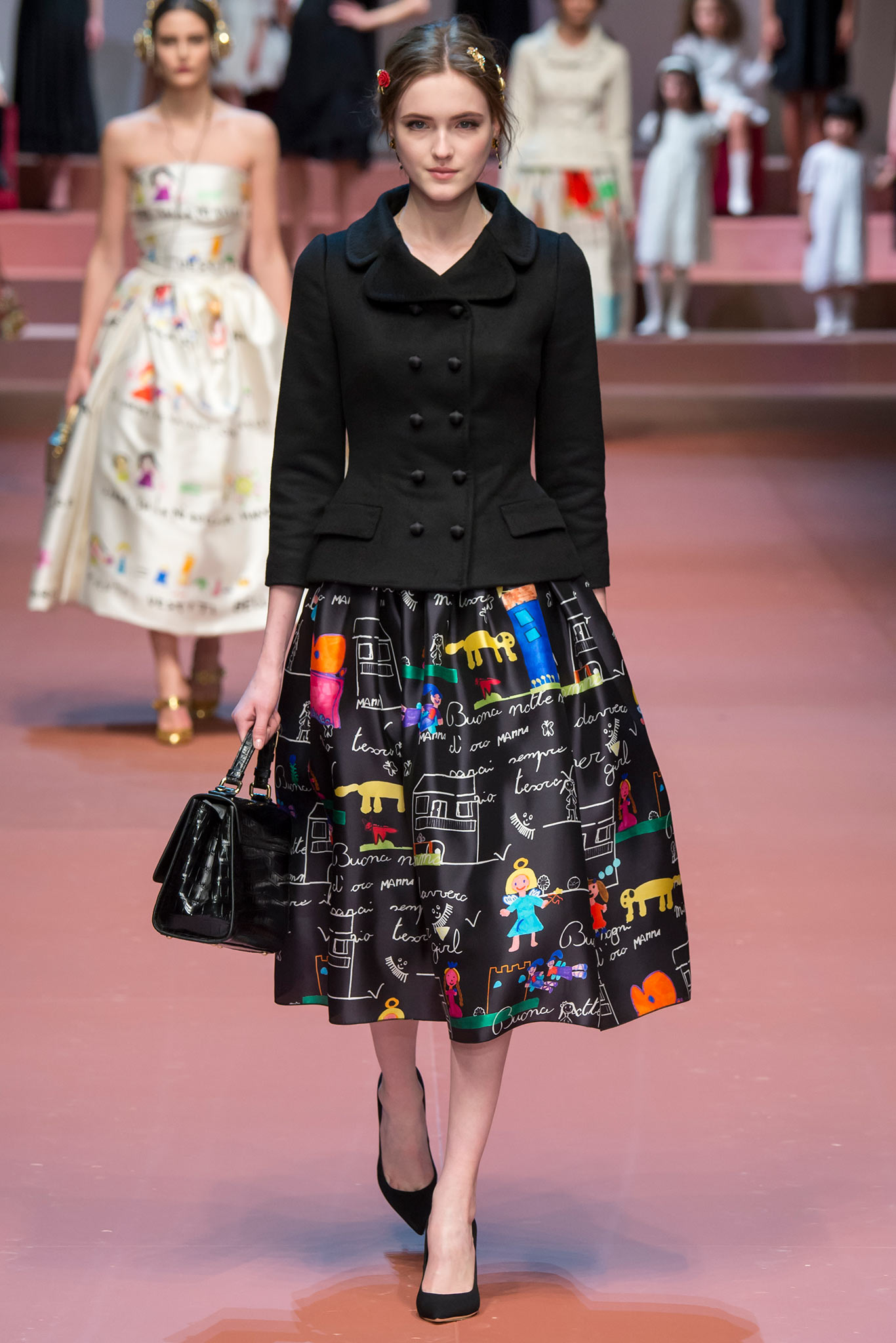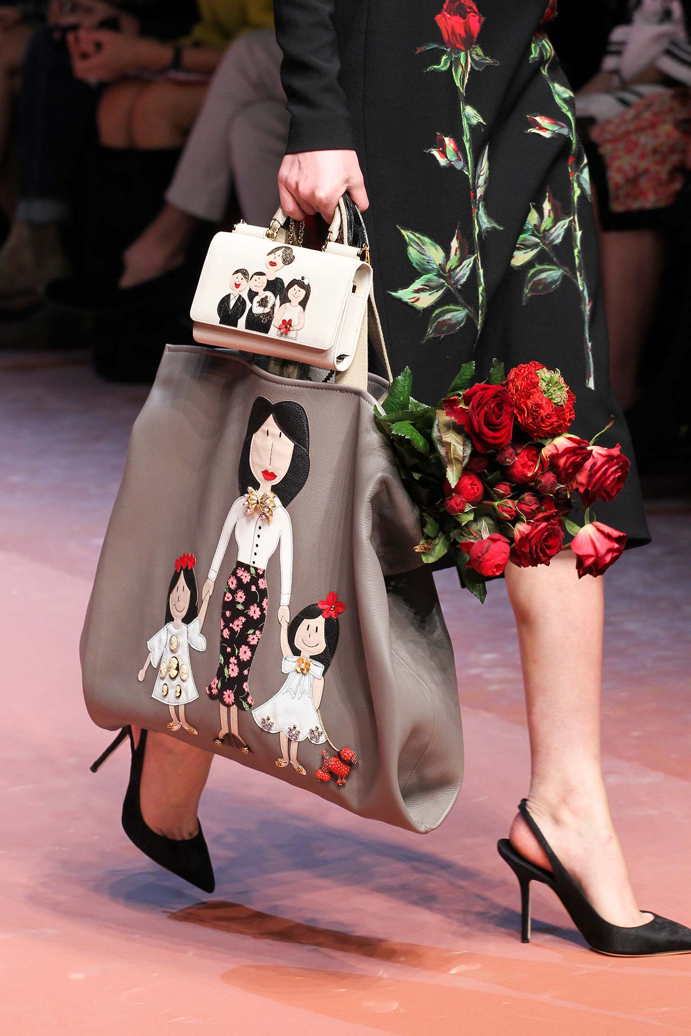 «Viva La Mamma!» — коллекция, посвященная материнству! Она добрая, яркая, сказочная и очень красивая! На платьях модельеры использовали принты детских рисунков, декорировали одежду, сумки и даже обувь цветами. В показе задействованы дети, которые держат за руку маму, сидят на руках или даже в животике)